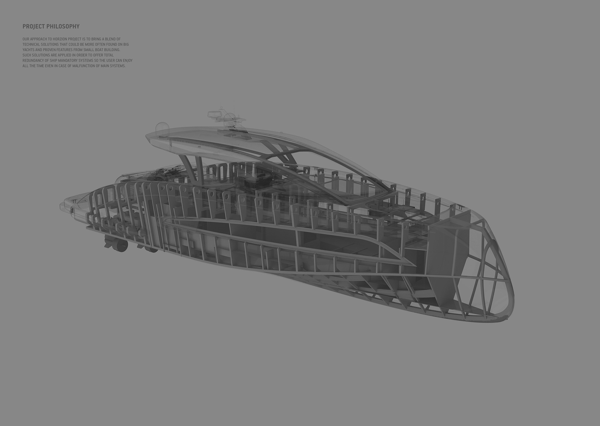 Interior design and art direction of a super tender ANTE 70.